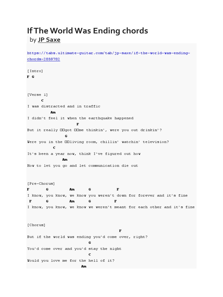 If The World Was Ending Chords Pdf Song Structure Musical Compositions